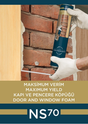 Pencere ve kapı montajı için formüle edilmiş, yüksek verim ve düşük genleşme imkanı veren PU köpük.